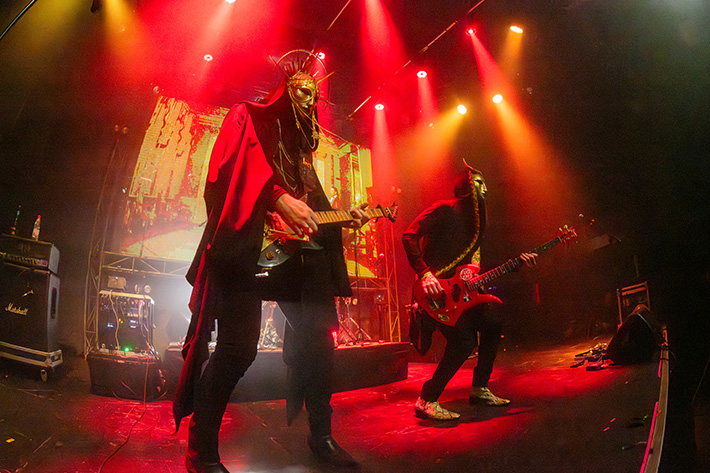La ejecución de estos compas es impecable y mantiene el aura misteriosa que se desprende de ellos: sus máscaras, sus vestimentas, las proyecciones de fondo y su música se entrelazan en este vórtice que te arrastra a la locura con su bizarra densidad: el resultado es atrapante e hipnótico con esas deformadas secuencias rítmicas que te llevan al borde de la disociación.