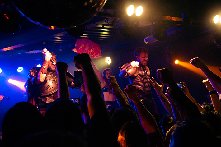"Name Der Rose" dejó un momento curioso, cuando una fan entregó una rosa a uno de los integrantes, mientras que "Bastard von Asgard" y "Kampfzwerg" sonaron como verdaderos gritos de guerra. La energía no decaía en ningún momento, pese a que el ambiente dentro de la sala ya se hacía pesado.