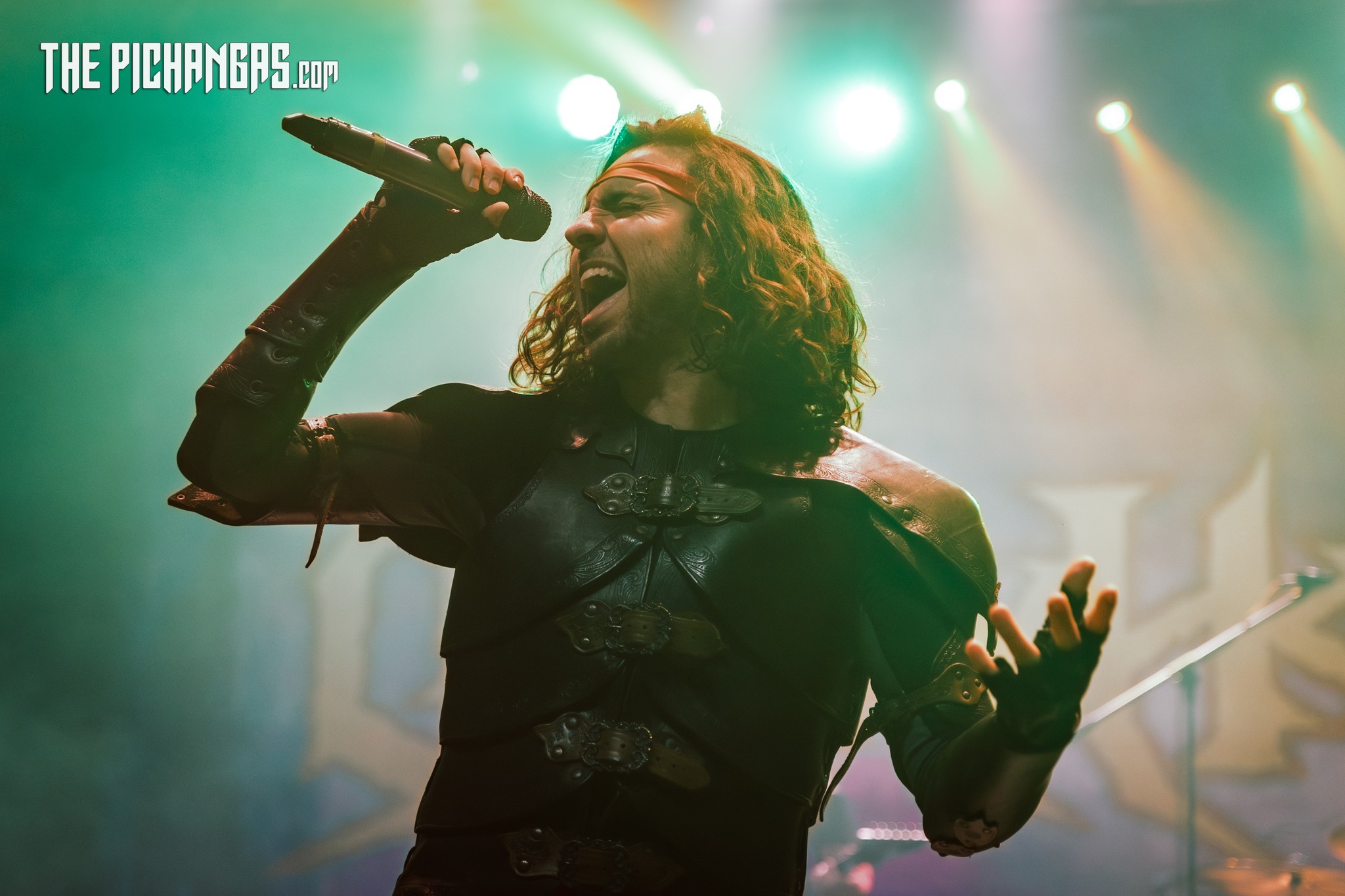 Felipe del Valle, su vocalista, apareció transformado en un guerrero con cuernos y portador de un escudo vikingo. Su voz, poderosa y dominante, marcó el inicio del asalto con "The Oaken Shields". El ataque continuó con "Scourse of Gods", "Heir of the Cross" y "The Bloodbath Feast".