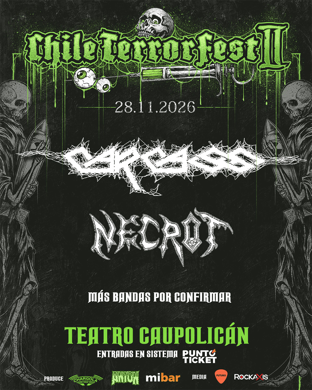 El cartel sigue creciendo y la cosa se pone cada vez más pesada. NECROT fue confirmado como nuevo integrante del CHILE TERRORFEST 2026, sumándose a CARCASS para una jornada que ya promete caos total.