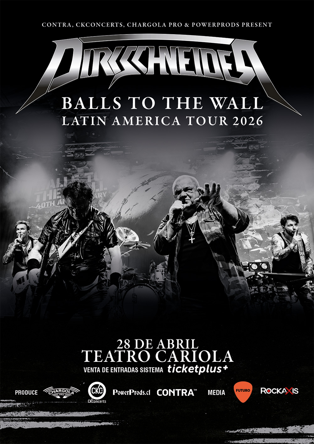 Udo Dirkschneider regresa a Chile junto a su banda DIRKSCHNEIDER para una noche que promete Heavy Metal en estado puro. La cita está agendada para el 28 de abril en el Teatro Cariola, con un show especialmente centrado en "Balls to the Wall" (1983), uno de los discos más emblemáticos del género, que será interpretado de forma íntegra.