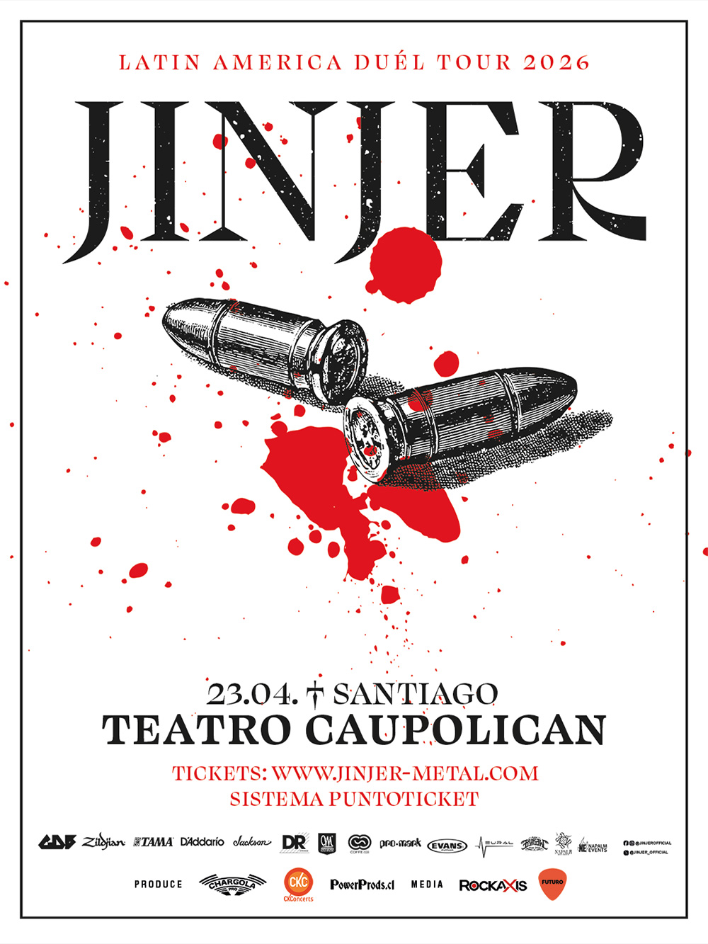 La banda ucraniana JINJER confirma su regreso a Chile para el 23 de abril de 2026 en el Teatro Caupolicán, como parte de su nueva gira latinoamericana. Esta vez llegan con "Duél" (2025), su disco más dinámico hasta la fecha, además de un set cargado de clásicos y varias de esas explosiones vocales marca registrada de Tatiana -Denise Rosenthal- Shmayluk.