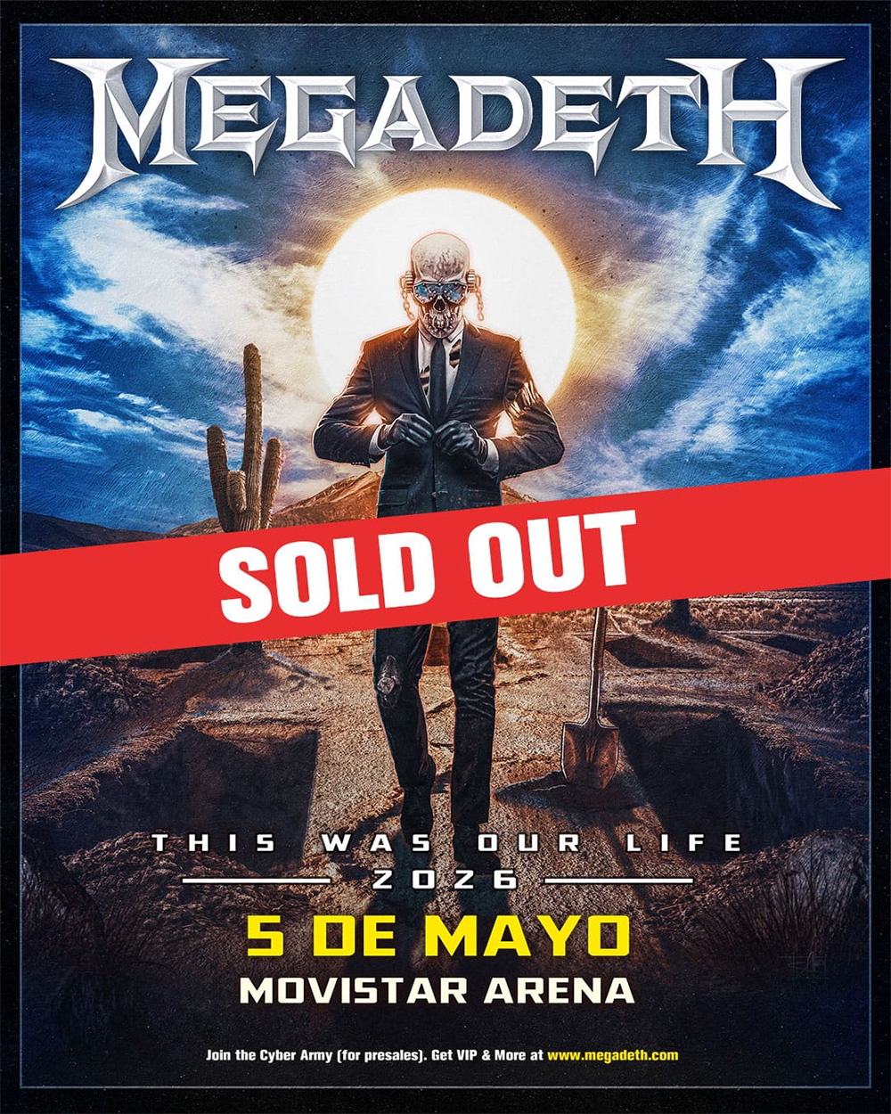El rugido de Vic Rattlehead volverá a retumbar en Santiago: MEGADETH confirmó su regreso a Chile con un concierto programado para el 5 de mayo de 2026 en el Movistar Arena, como parte de su gira mundial de despedida "This Was Our Life".